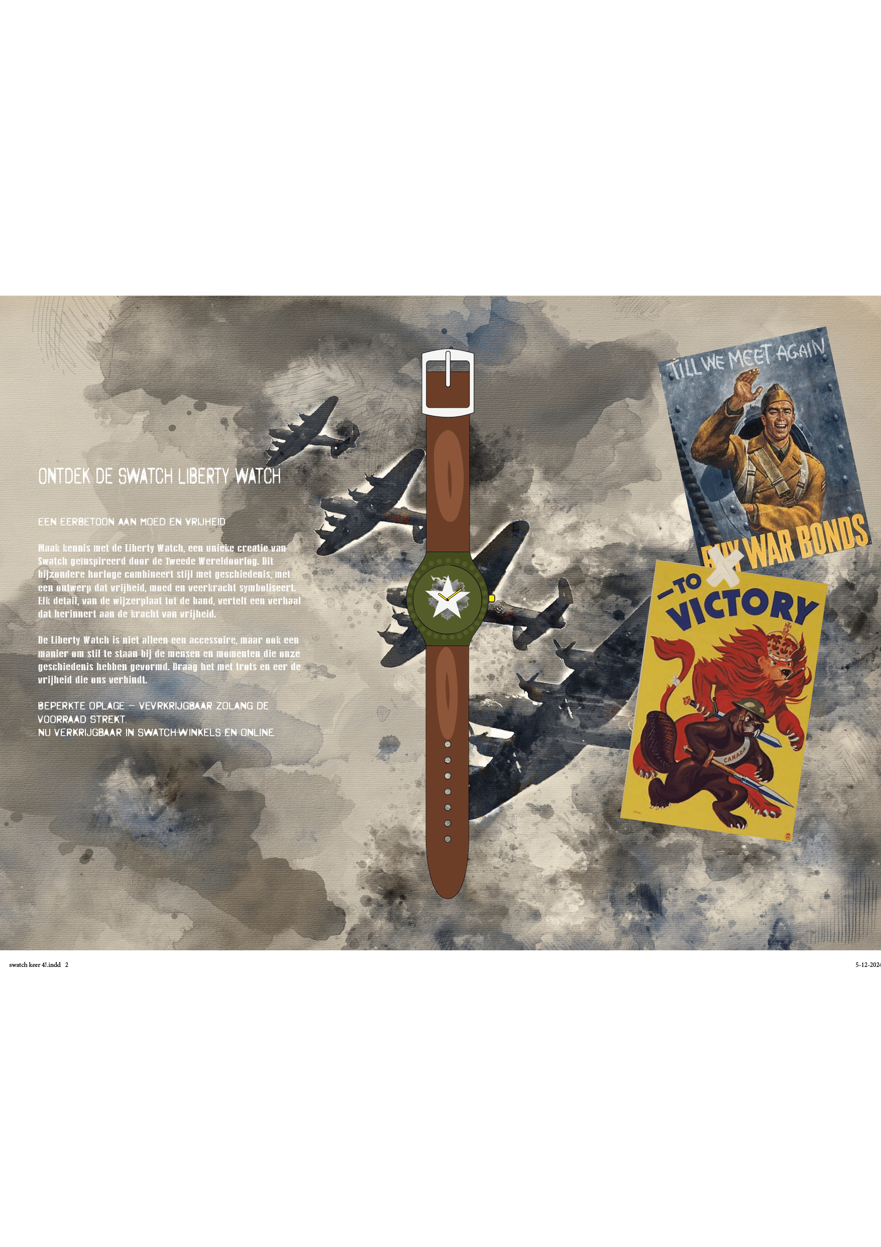 Naast het ontwerpen van het horloge ontwerp, ben jij ook verantwoordelijk voor het maken van het maken van promotie-uitingen. Daarom wordt je ook gevraagd om een promotiefolder en een poster te ontwerpen. Deze komen te hangen in de Swatch winkels.